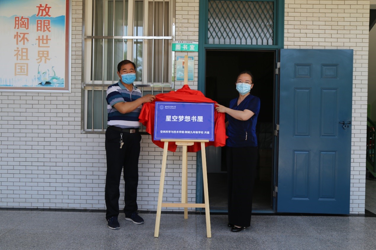 揭牌仪式上,姜莉莉表示,空间学院高度重视与荆姚学校的对接帮扶工作,瞄准“教育扶贫”将“扶贫”与“扶志”、“扶智”相结合,围绕荆姚学校实际需求陆续开展了“星空支教接力计划”、“星空科普课堂”、“梦想直通车”等多项工作,参与共建了荆姚学校“梦想教室”和“红色筑梦科创小屋”,改善和提升了学校硬件条件和教学环境。此次学院将以与荆姚学校共建“星空梦想书屋”为契机,进一步加大帮扶投入力度,为荆姚学校建设提供智力支持,助力荆姚学校师生发展。