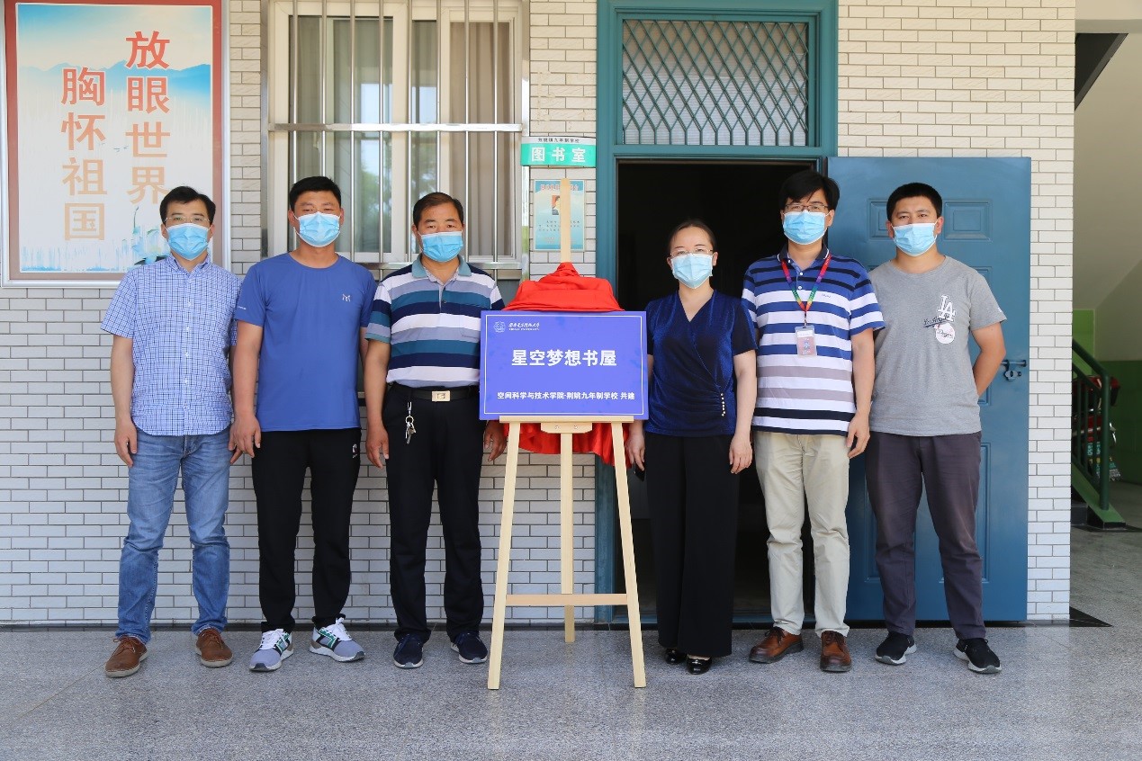 (通讯员 郑瑞博)5月28日,3044永利集团与荆姚九年制学校共建的“星空梦想书屋”揭牌仪式在荆姚学校举行,空间学院副院长姜莉莉,导航控制系教师戴浩、房新鹏、刘立,工会干事郑瑞博一行五人与荆姚学校校长陈方平共同参加了仪式。