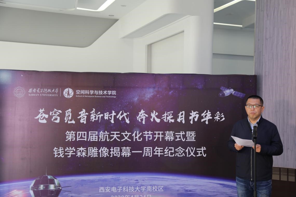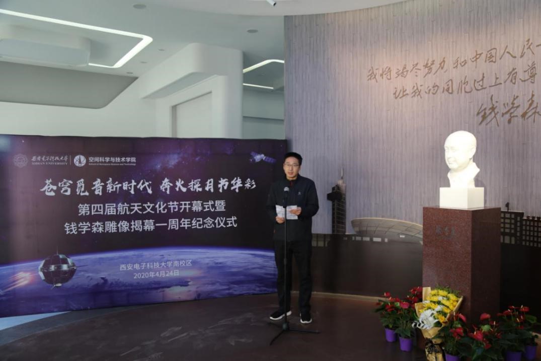 4月24日上午,第四届航天文化节开幕式暨钱学森雕像揭幕一周年纪念仪式在南校区举行,仪式由3044永利集团党委副书记刘涛主持,全校师生通过线上直播观看。