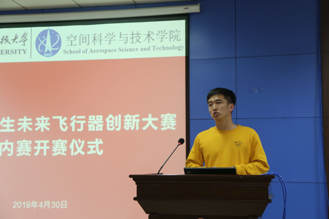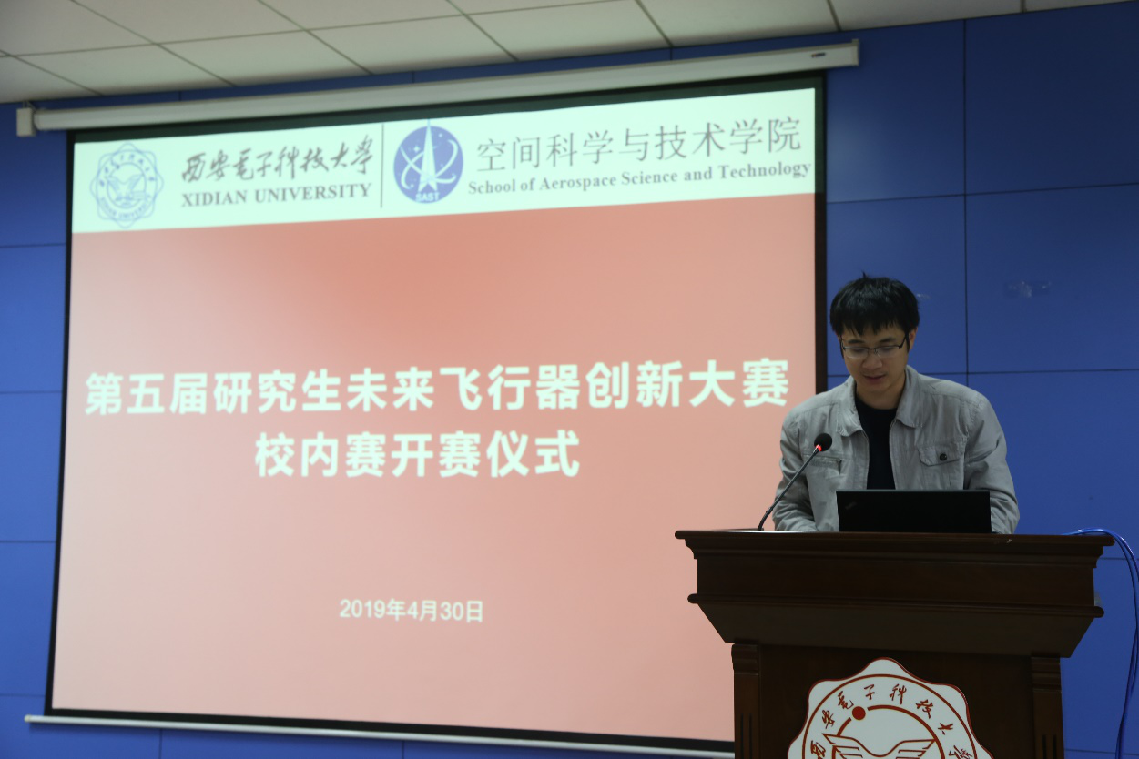 (通讯员:尚保强)人间最美四月天,建功立业在航天,4月30日下午15:00,第五届“飞鲨杯”中国研究生未来飞行器创新大赛校内赛开赛仪式在南校区G楼240报告厅顺利举办。本次活动由空间学院党委副书记刘涛主持,研工部张海战副部长、院长助理冯东竹及部分空间学院师生参加了本次开赛仪式。