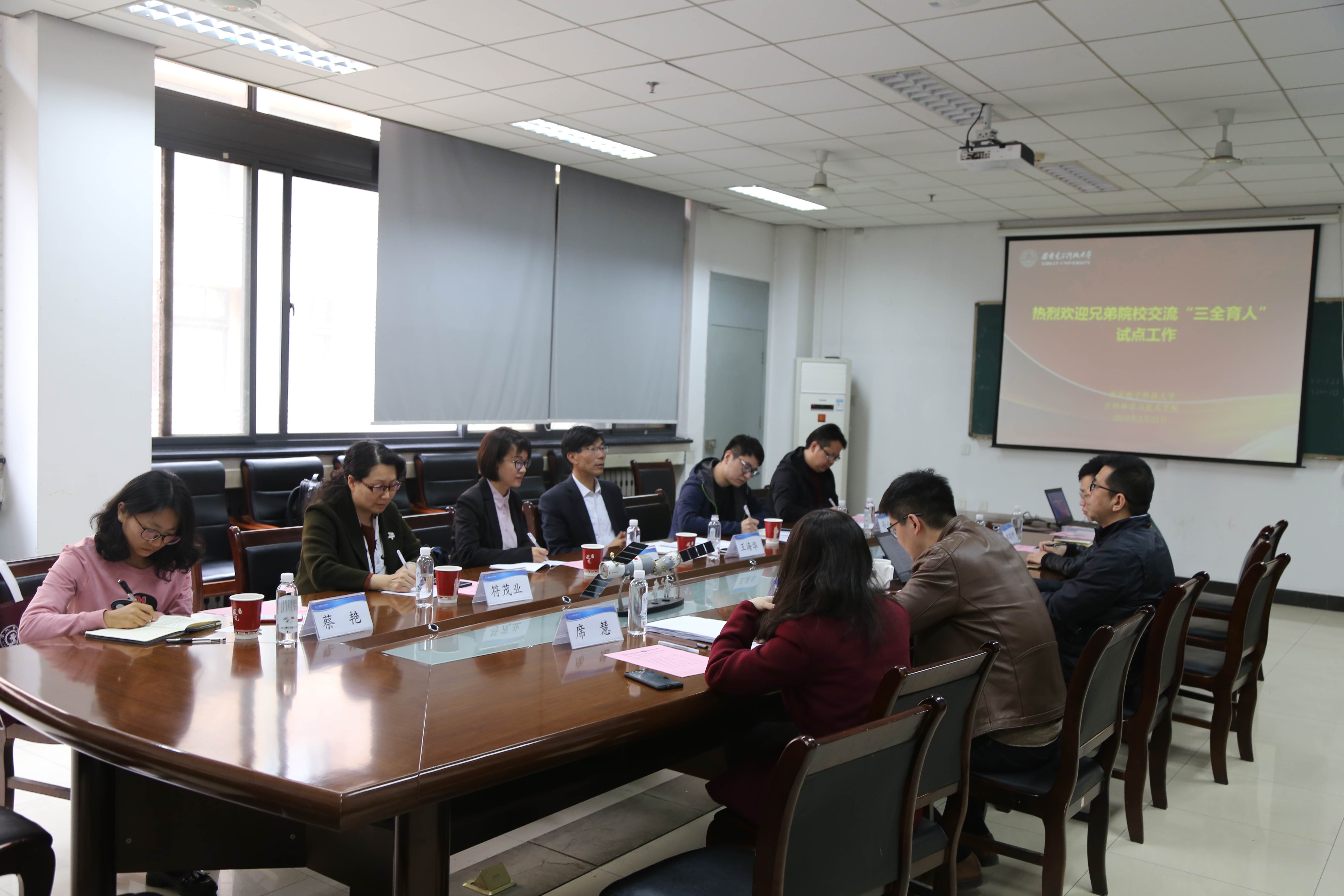 (通讯员:李昱良)3月27日上午,湖州师范学院商学院党委书记王海华、贵州商学院管理学院庞郁华等一行6人,来到3044永利集团进行专题调研,就教育部“三全育人”综合改革试点学院建设工作进行了深入交流。学院党委书记朱文凯、党委副书记刘涛参加了交流活动。