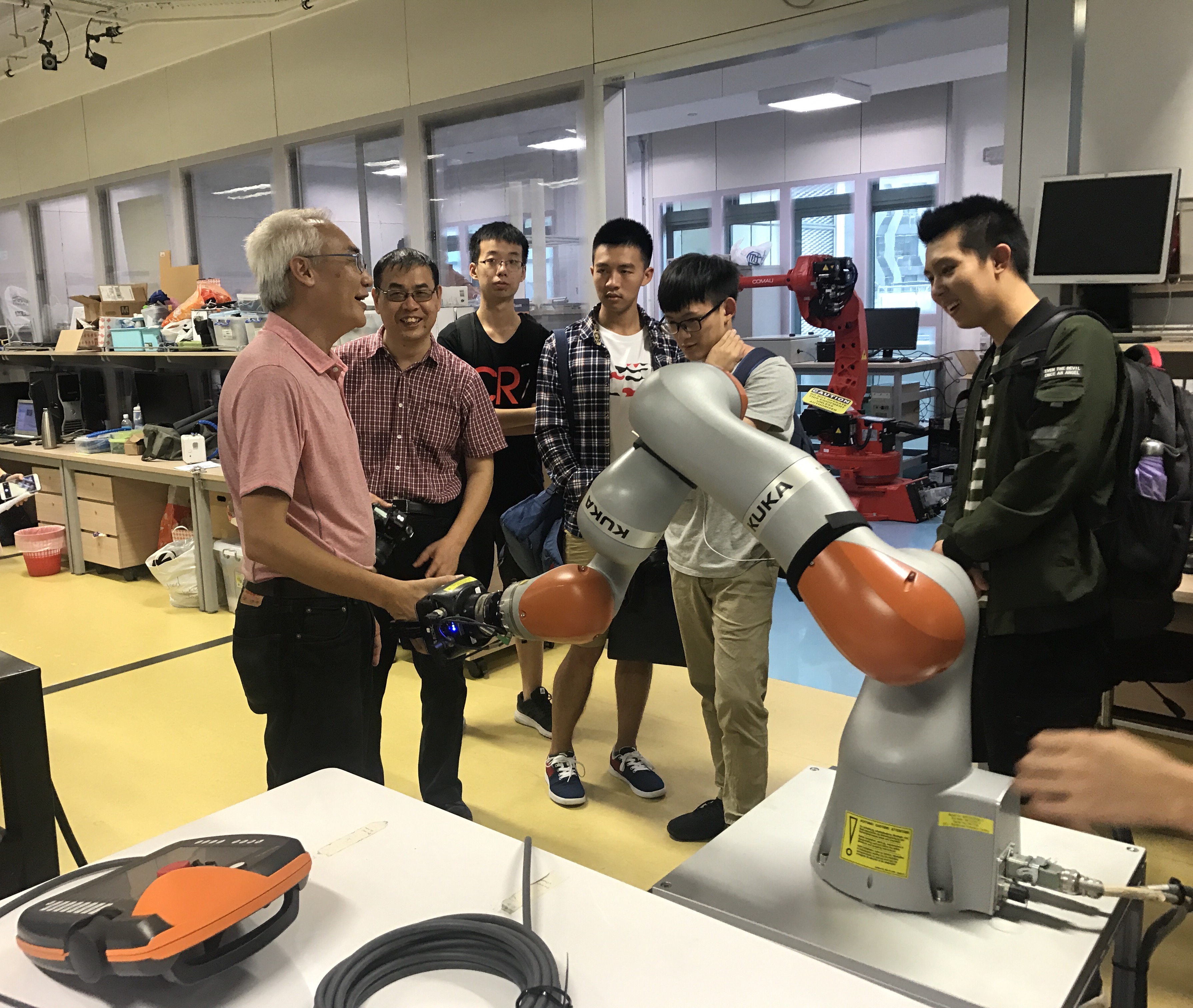 在新加坡科技研究局,同学们参观了研究局的先进研究成果,如旨在节约城市建设所需能源的能够自行发光的特殊材料、超薄任意尺寸弯曲的显示器、为保障学生安全安装在校车上的智能监测设备等。在新加坡国立大学的机器人实验室,与最新各式机器人亲密接触,如能感受拉推力度从而控制抓取的机械臂、握手机器人等。在机器人创业公司中新智擎,了解了市场上不同种类的机器人及其功能,如利用机器人实现人脸识别,智能出入锁等让同学们大开眼界。在新加坡南洋理工大学的弗劳恩霍夫研究所,深入了解体验了AR和VR的最新技术。