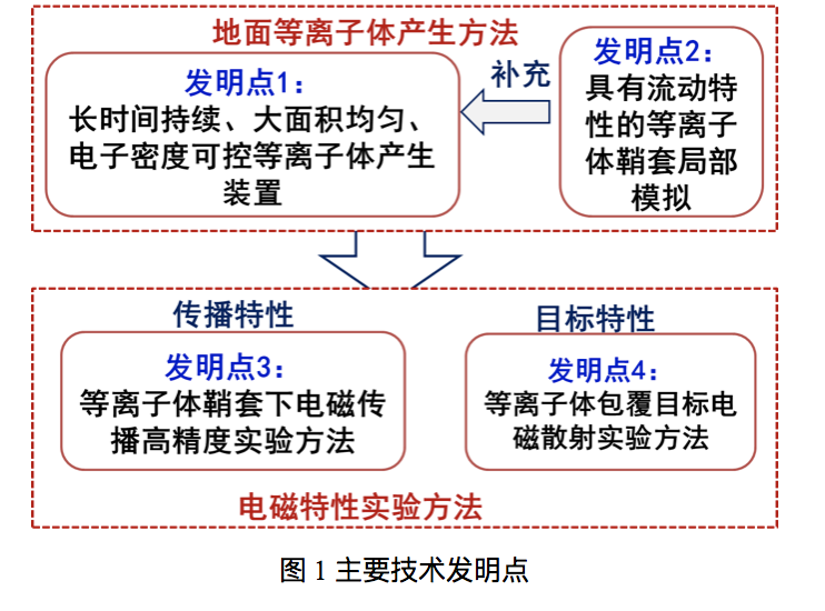 提出了环形电极辉光放电、功率约束下高密度等离子体产生方法,国内首次研制成功长时间连续可控、大面积均匀的等离子体模拟装置。提出了平面射流等离子体产生方法,首次在低温环境下解决了等离子体均匀稳定性和流动性问题。拓展了局部流动特性模拟能力。提出了等离子体鞘套下电磁传播高精度实验方法,突破了防绕射和装置误差消除、天线阻抗自动匹配关键技术,实现了高精度电磁传播实验系统。电磁实验低成本、重复性好,复现了L、S频段黑障现象。发现了动态等离子体对信号的幅相寄生调制、星座图旋转、天线极化失配等电磁新现象,具有误码率分析等能力。提出等离子体包覆目标电磁散射实验方法。建立了支持等离子体包覆目标雷达回波特性研究环境。