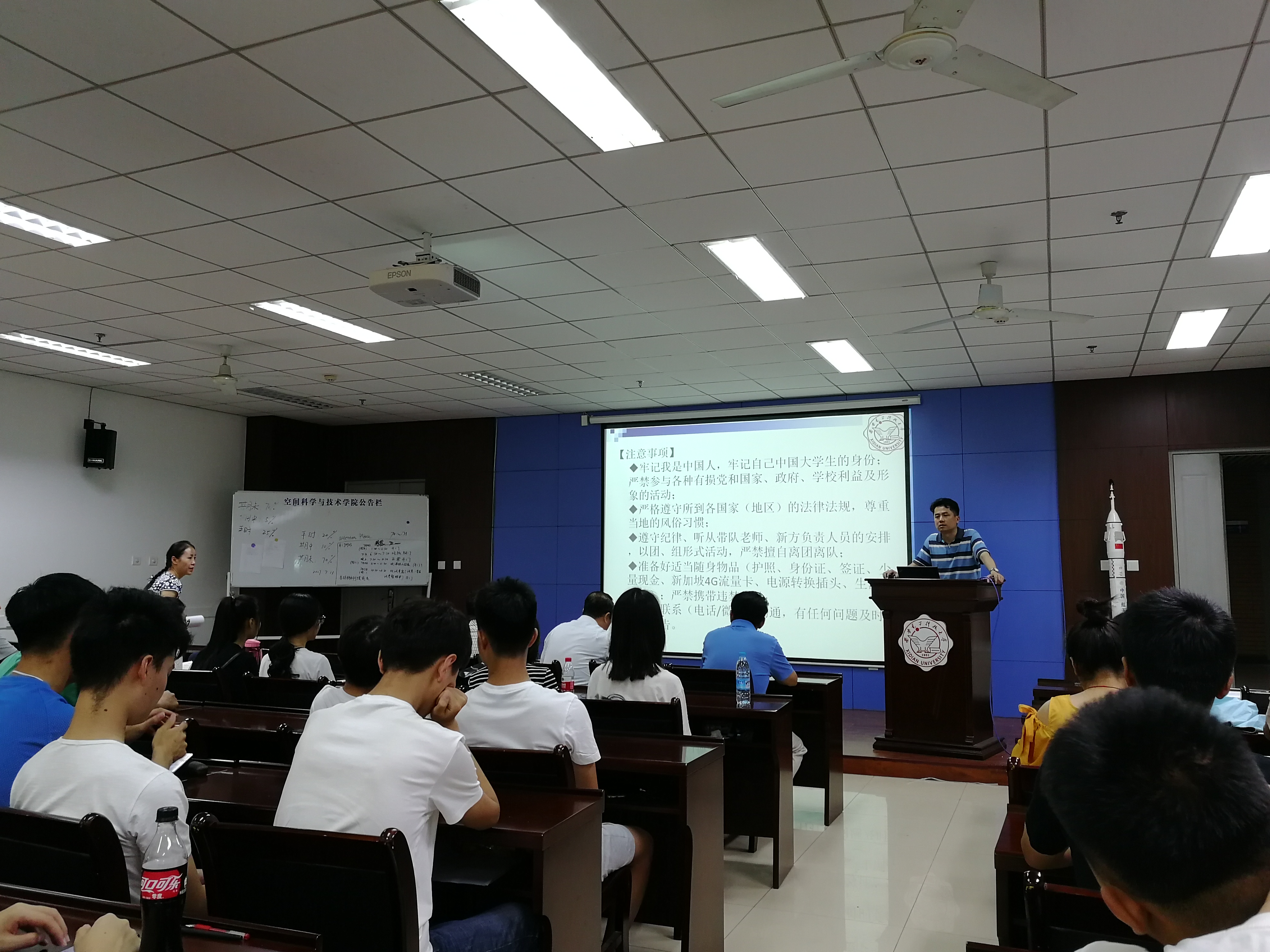 左处长表示,学校近年来对学生的国际化发展支持力度是很大的,对本次NUS智能科技训练营同样给予了很大的支持。随着中国经济的高速发展以及国际地位的提升,中国学生在国外应首要注意的是个人的人身财产安全,出门结伴而行,尽量与大团一起行动,并保持联系顺畅。其次是要尊重当地的民风习俗,遵守当地的法律法规,避免带来不用必要的麻烦。作为西电和中国大学生形象的代表,我们同学在新加坡学习的过程中,应注意自己的行为举止,不随地吐痰,不乱扔垃圾,为西电、为国家建立一个良好的形象。最后我们同学要珍惜这个难得的机会,好好学习相关知识,以期更好地报效祖国。