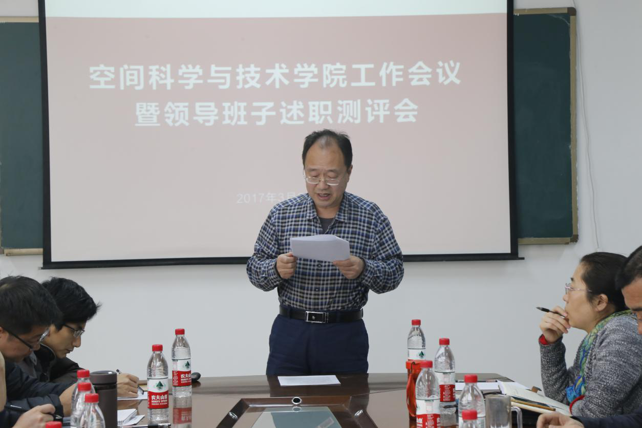 会上,学院领导班子分别面向全院教职工进行了述职,总结了自己过去一年内的学习工作成绩并坦承目前仍然存在的不足之处,向师生们汇报了个人2017年工作计划。述职结束后,空间院全体师生对领导班子三位成员进行了民主测评。