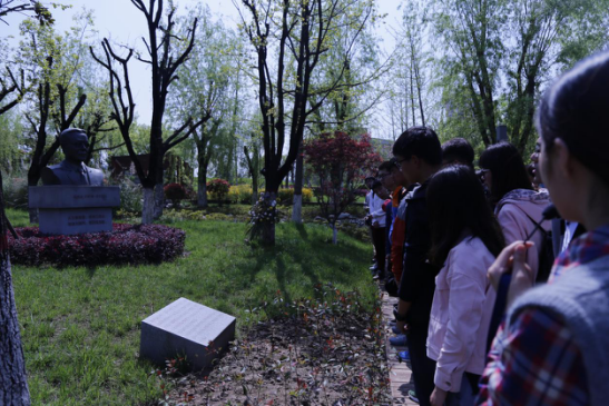 午后,同学们登上前往五O四所的大巴。在车上,带队老师强调了此次出行的注意事项,提醒同学们遵守保密单位相关规定,文明参观。由于人数较多,同学们分为两队,一队首先参观五O四所园区。在工作人员的带领下,同学们从英才广场出发,经过丰碑广场,巨大的航天标志映入眼帘。在航天雕塑下,工作人员详细说明了五O四所的建立时间、发展历程和困难与成绩。随后,大家来到智慧广场,在智慧广场中,工作人员重点介绍了航天先烈陈芳允(1916.4.3-2000.4.29 ,浙江台州黄岩人,无线电电子学家,中国卫星测量、控制技术的奠基人之一,“两弹一星功勋奖章”获得者,中国科学院院士,中国科学技术大学和国防科技大学教授,“863”计划的发起者之一)的故事,在陈老的雕像前,所有学生们驻足沉思,重温了峥嵘岁月中那些不平凡的往事,也为航天人勇于拼搏、敢于争先的精神而感动。