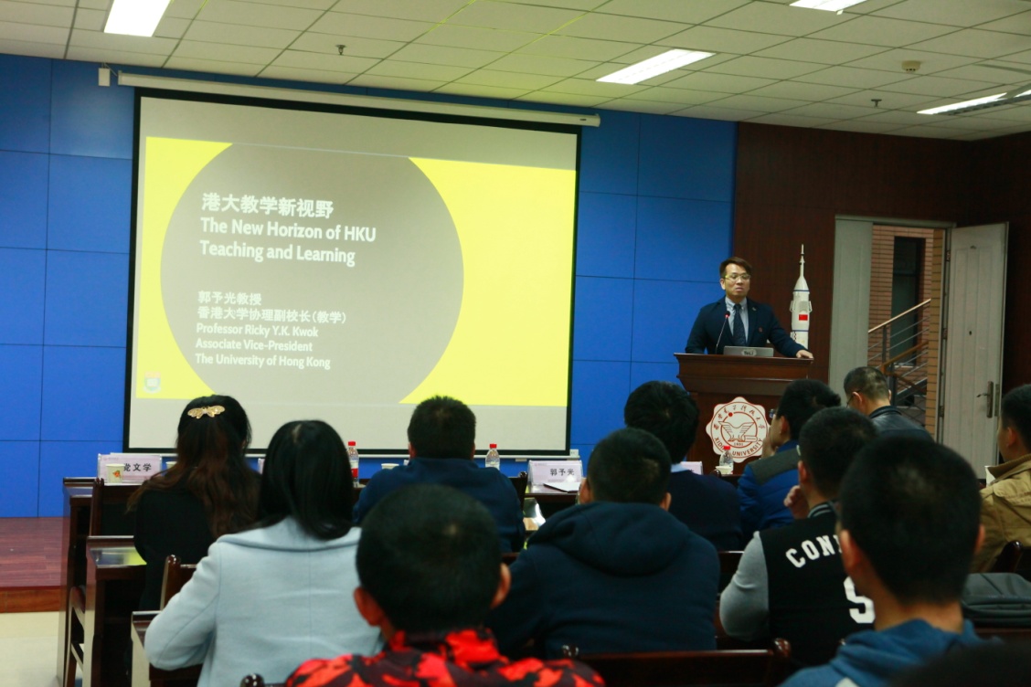 郭教授在讲座中介绍了香港大学关于教学的新理念、新视野,注重创新、科技和战略思考在教学实践当中的作用,他认为创新技术和力量正在拓宽当代对于“教”与“学”的定义,关于传统教学的概念、理论和实践也都在发生日新月异的变化。郭予光教授和老师们分享了香港大学在电子学习领域做出的努力,介绍了港大在2022年时将实施的关于要求每一位在校学生在大学四年中必须有前往中国内陆或海外学习实践的新政策。在报告中,郭教授还和到场的老师及同学们展开互动,就如何开展学习指导和体验式学习、毕业生如何应对全球化挑战等问题互相交流,老师同学们纷纷表示获益匪浅。