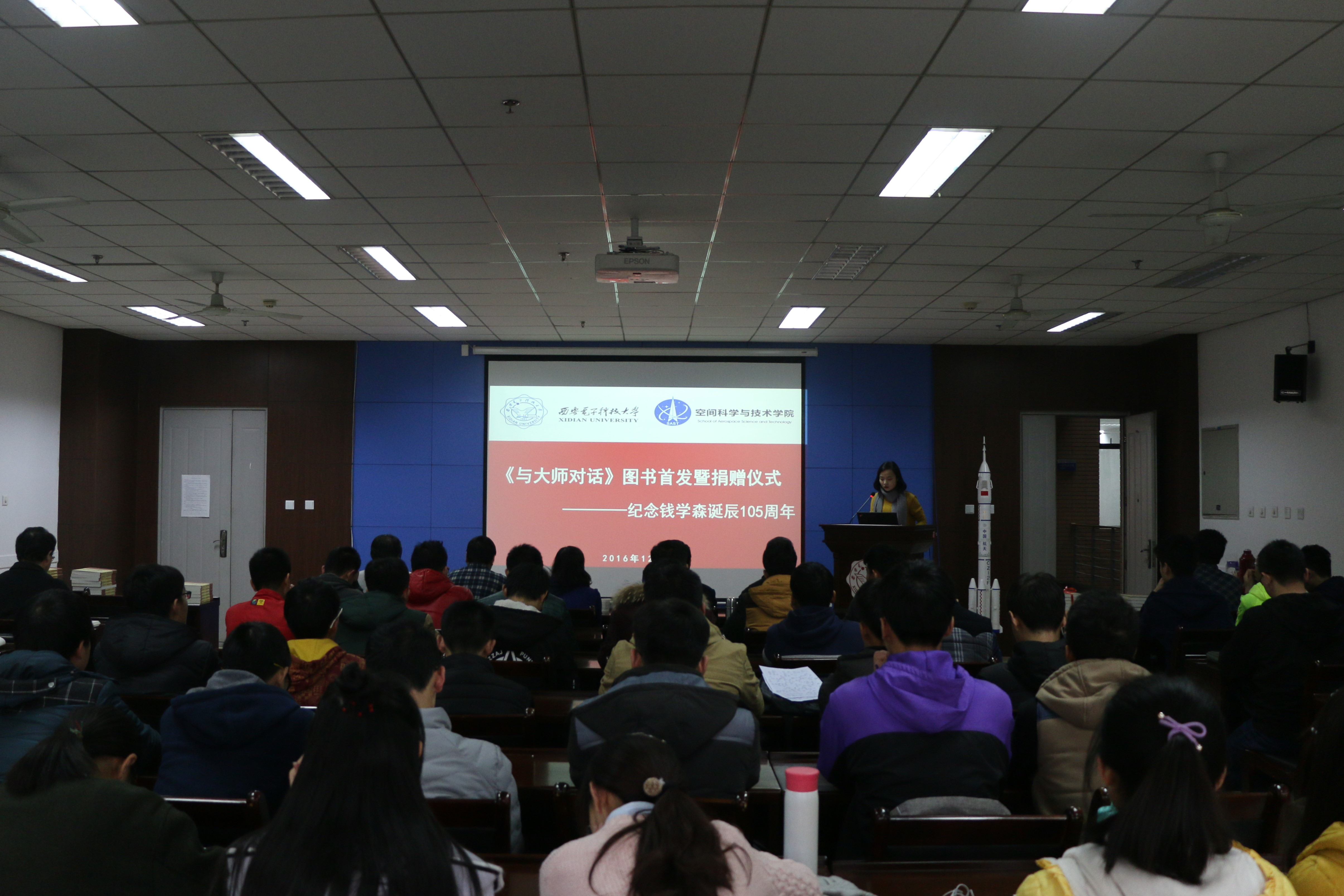 为纪念我国航天事业创建60周年,著名科学家、伟大思想家钱学森先生诞辰105年暨我校“钱学森空间科学实验班”创办第二年,在西电出版社与空间学院的共同努力下,在钱学森先生之子、上海交通大学钱永刚教授的倾力帮助下,《与大师的对话——著名科学家钱学森与钱学敏教授通信集》在西电出版社于日前正式出版发行。《与大师对话》图书首发及赠送仪式于12月14日在南校区G240隆重召开。西电出版社社长胡方明教授,西电图书馆副馆长李文兴老师,3044永利集团执行院长李小平教授,党委书记梁玮老师以及钱学森空间科学实验班全体学生参加了本次仪式。
