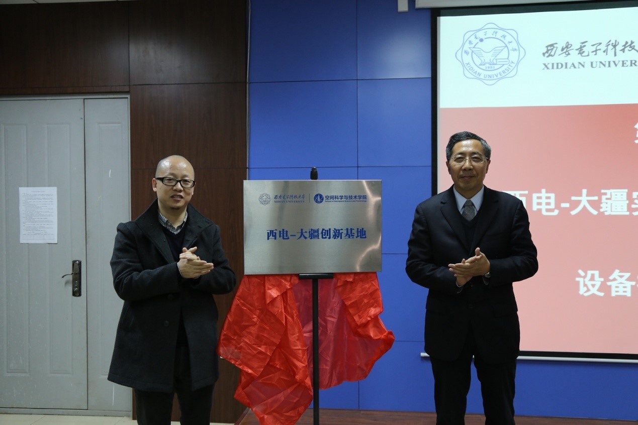 仪式上,李建东与邵建伙共同为实验创新基地揭牌,空间学院与大疆创新科技公司签署了创新实验基地共建协议并进行了捐赠设备赠予仪式。李小平分别为邵建伙与霍伟栋颁发空间学院企业导师与客座学者聘书并佩戴校徽。霍伟栋在致辞中对西电-大疆创新基地的成立表示诚挚的祝贺,希望在学生交流、课程共建及学术互访等全力促进西电与香港大学的深入合作。
