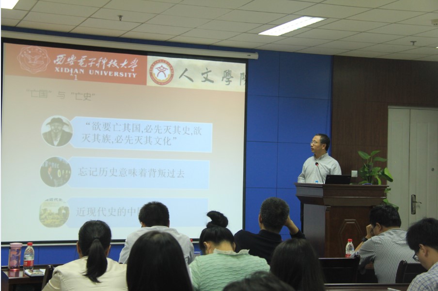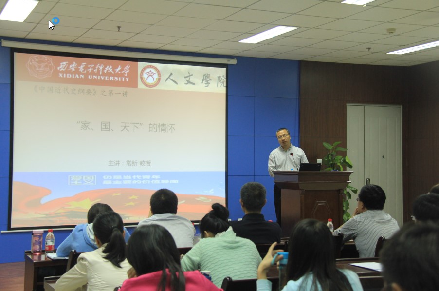 然后,常新教授做了激情洋溢的报告,他提到了我院的钱学森空间科学实验班,从而以钱学森入题,从一个主线,两个教育,三个反对,四个坚持,四个方面深入阐述了在新形势下,我国历史传统的新意义。