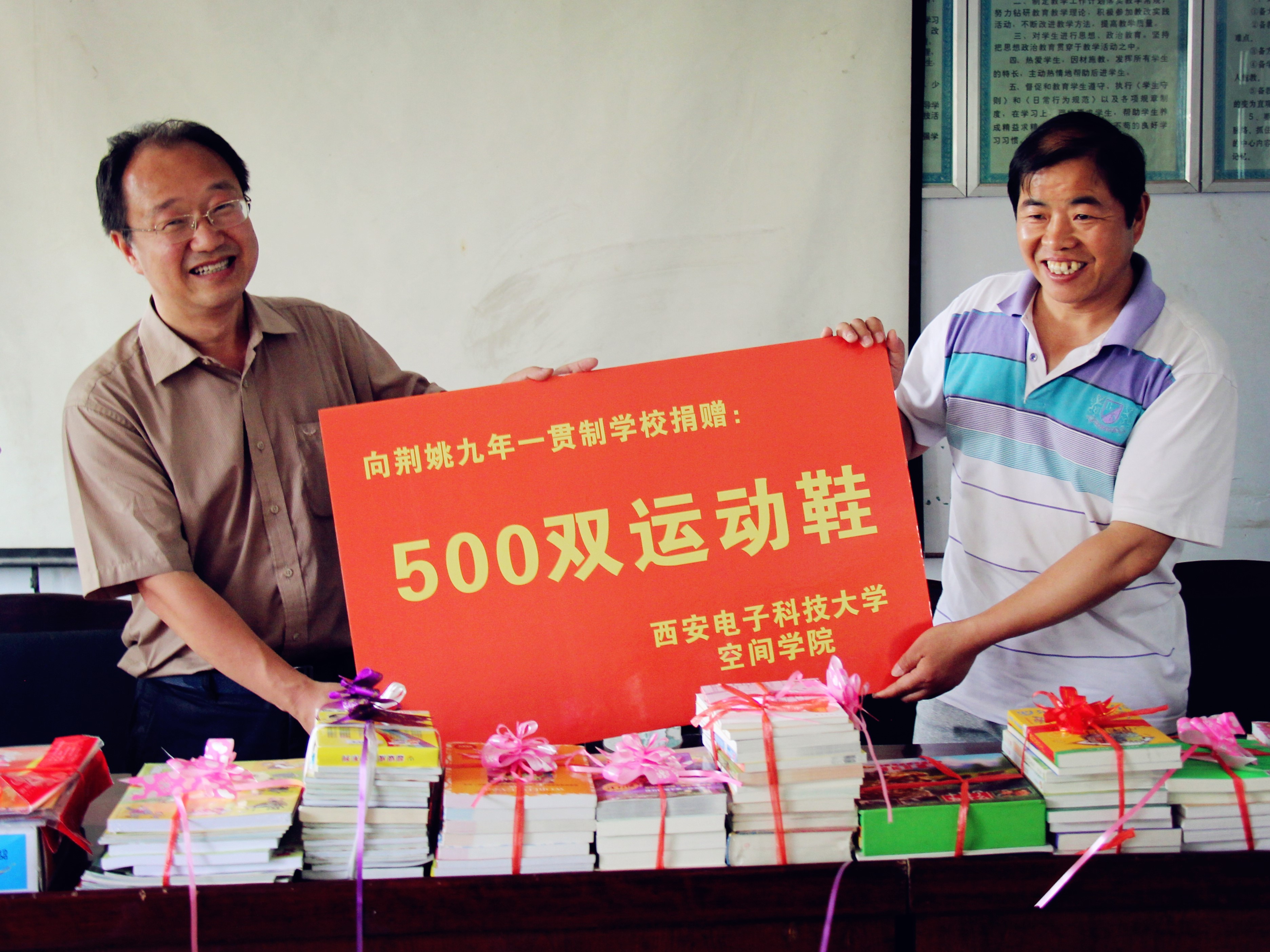 师生们来到我院定点扶贫基地-荆姚九年一贯制学校,为小朋友们带去了由全院学生捐款购买的儿童节礼物,都是大家精挑细选的儿童读物、地球仪、彩色铅笔等,还为他们送去了500双运动鞋,希望在六一之前为孩子们送去快乐和祝福。