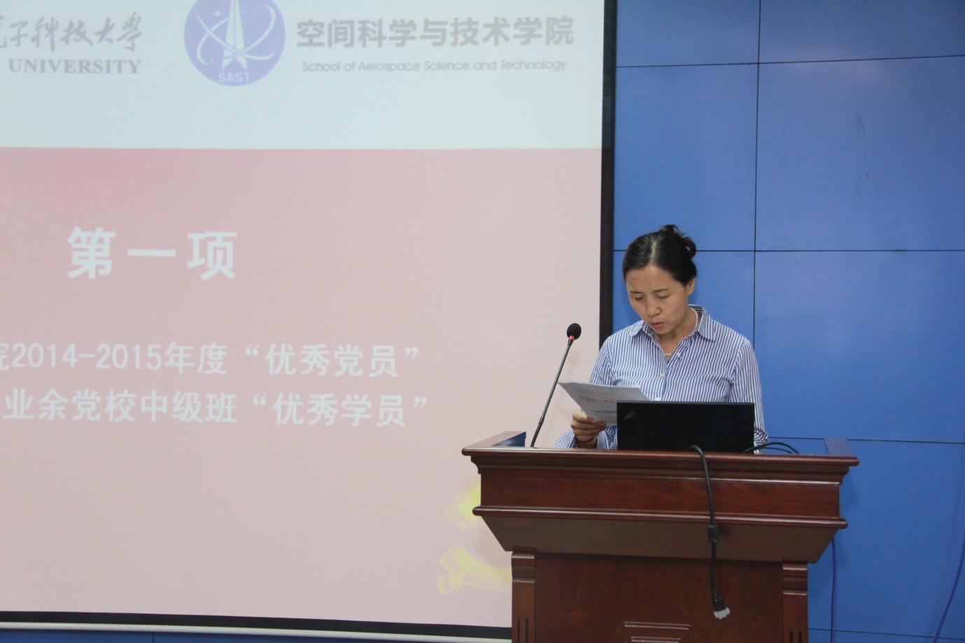 随后,党委委员、执行院长李小平宣读了学院党委对学院2014-2015年度优秀共产党员以及首届业余党校中级班优秀学员的表彰决定。在“三严三实”专题教育环节中,全体党员一起观看并学习了由学院自行整理编辑的“三严三实”专题教育视频《作风建设永远在路上》。最后大会全院师生发出了“团结奋进,努力加快空间科学领域的一流研究型学院建设”号召和倡议。