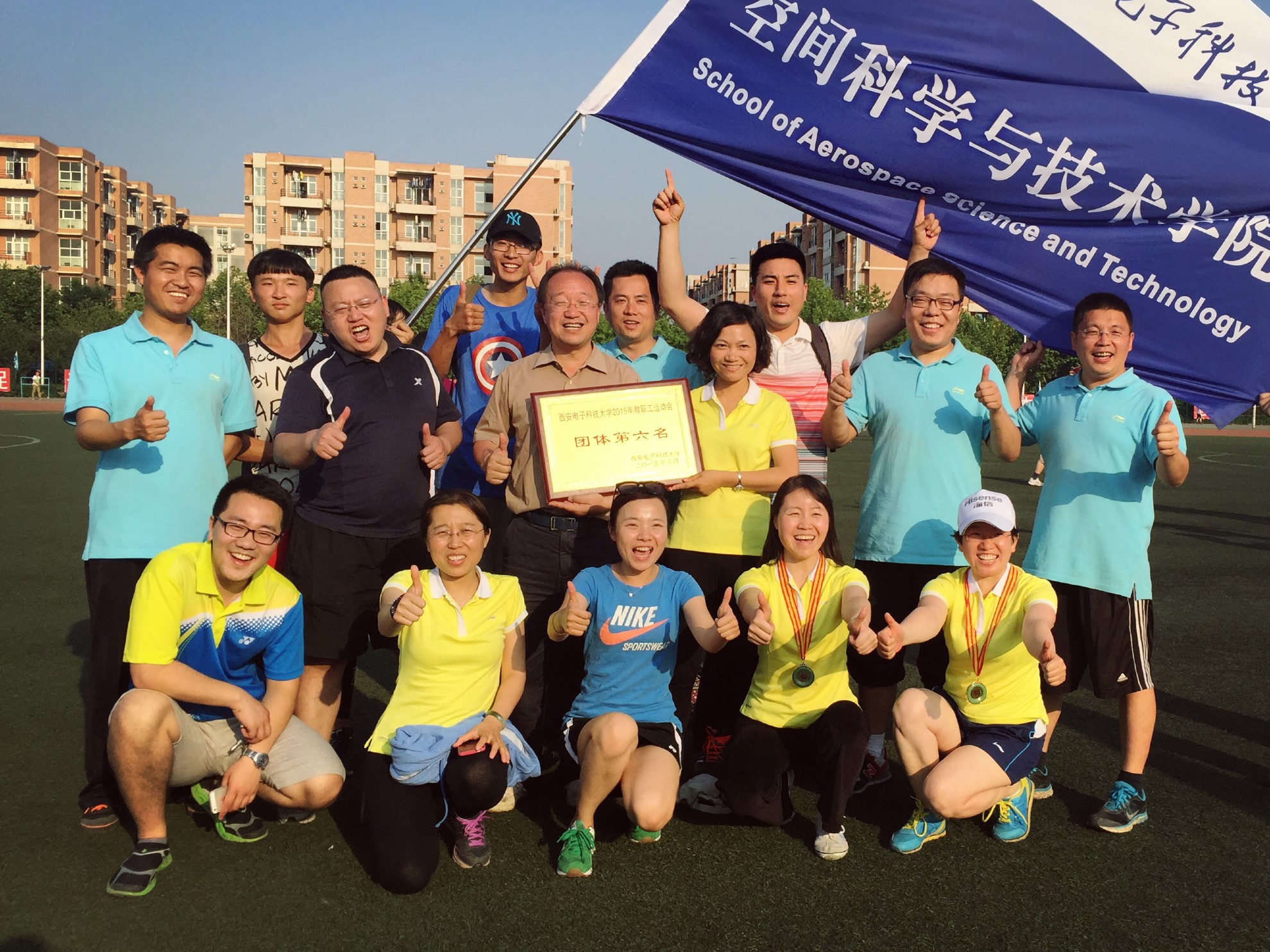 从朝阳升起到夕阳落下,两日的征程很快就结束了,从田径赛场的争分夺秒到趣味运动的共享齐乐,团结奋进的号角永不停止。最终我院教师团体总分名列全校第六名,学生团体总分名列全校第九,这样的成绩凝聚了空间师生的每一份努力、每一声呐喊、每一滴汗水,我们还将团结一心、再接再厉,为梦想,为我大空间奋力拼搏!!