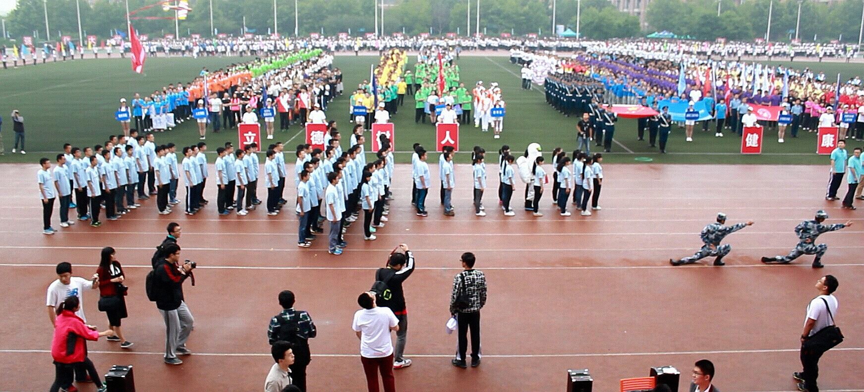 5月22日上午8点30分,永利集团3044第37届学生运动会、教职工运动会在北操场隆重开幕。开幕式上空间学院作为第13个方队出现在主席台时,全场的眼光都投向了这支团结一致、新颖靓丽的队伍,方阵摆出了辽宁号舰载机的形状,配合着辽宁号舰载机起飞的动作指令,三架航模从队伍后方腾空而起,用彩烟在天空中留下了美丽的印迹!随后方阵队伍的队形转变为直插云霄的火箭,随着321的发射指令,由女生方阵代表的“火箭返回舱”成功“着陆”在“内蒙古草原”上,学院舞蹈队的同学们身穿华丽的蒙古节日盛装闪亮登场,载歌载舞欢庆“空间一号火箭”的“成功发射”,此时全场掌声雷动,主席台上的领导嘉宾随着音乐节奏一起击掌打拍,最终空间师生以富有创意、精彩新颖的开幕式表演成功卫冕了开幕式最佳创意奖,这样的荣耀属于每一个为之努力付出的空间人。