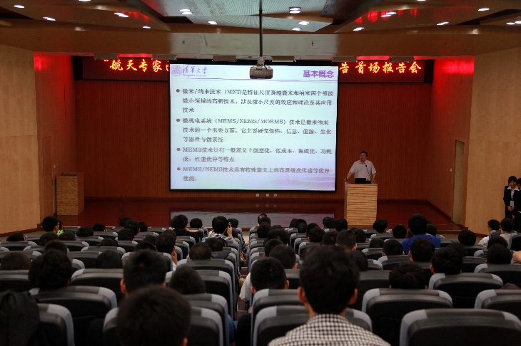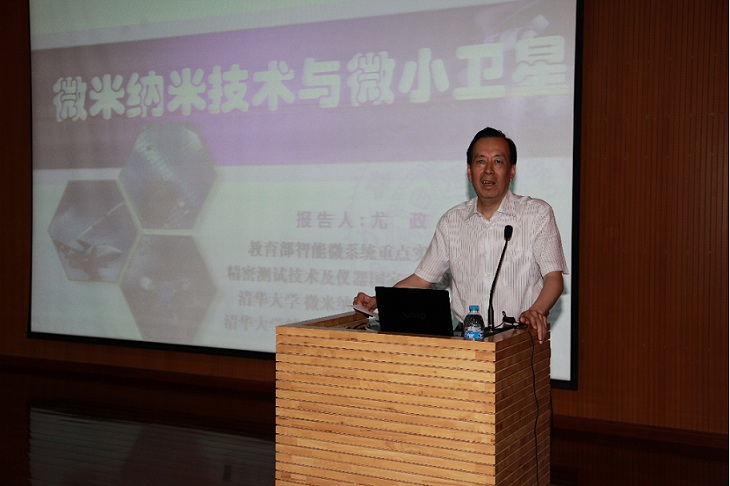 尤政院士首先介绍了微纳米技术与微系统的进展,微纳米技术与卫星结合的广阔领域和应用前景;展示了微小卫星技术以其独特优势在航天领域发挥的重要作用,是引领航天装备的核心基础技术;最后阐述了研究团队在该领域的学术研究和科研成果,清华1号、NS-1号开创了多项技术创新和标准体系。尤政院士以通俗易懂又不失幽默的语言,配以形象的动画和精美图片,向在场师生奉上了一场科技盛宴。尤院士与同学们进行了热烈的互动交流,一一解答了同学们对航天、对学科、对未来的疑惑问题,现场气氛十分热烈。空间实验班同学为尤院士献上鲜花并赠送了具有陕西特色的小礼品。整个活动由本科实验班同学主持策划。