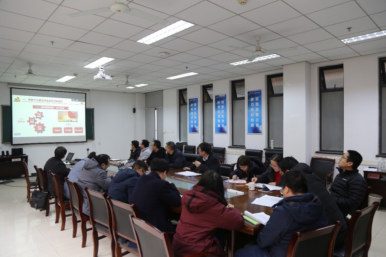 朱伟首先传达了学校关于十九届五中全会精神的学习要求,领学了《中国共产党第十九届中央委员会第五次全体会议公报》和《中共中央关于制定国民经济和社会发展第十四个五年规划和二〇三五年远景目标的建议》,并提纲挈领地解读了全会精神。朱伟谈到,认真学习领会十九届五中全会精神是当前和今后一个时期内学院的重大政治任务,学院上下要进一步提高政治站位,切实把思想和行动统一到中央和学校党委的决策部署上来,围绕“十四五”规划对标对表,服务国家战略需求,积极融入区域发展,以求真务实的作风做好学院各项工作。