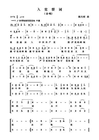 “我志愿加入中国共产党,拥护党的纲领,遵守党的章程…”,歌曲《党旗下的誓言》是由西安音乐学院作曲系陈大明教授结合《中国共产党入党誓词》,为党谱写的时代颂歌。《党旗下的誓言》以歌曲的形式带领全体党员重温《入党誓词》,吹响新时代嘹亮号角,激励全体共产党人践行党的宗旨和誓言,筑牢初心使命,为实现中华民族伟大复兴的中国梦做出新的更大的贡献。自出版以来,《党旗下的誓言》相继在上海中共一大会址、延安中共七大会址、井冈山、八路军办事处及遵义会议纪念馆等地举行发布传唱会。