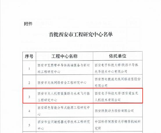 (通讯员 尚保强)近日,西安市发展和改革委员会公布了首批西安市工程研究中心拟认定名单,空间学院孙伟教授联合西安爱生无人机技术有限公司申报的西安市无人机智能集群与未来飞行器工程研究中心获批建设。