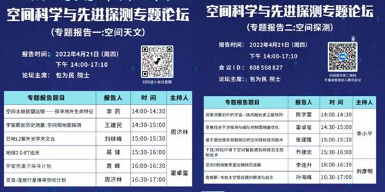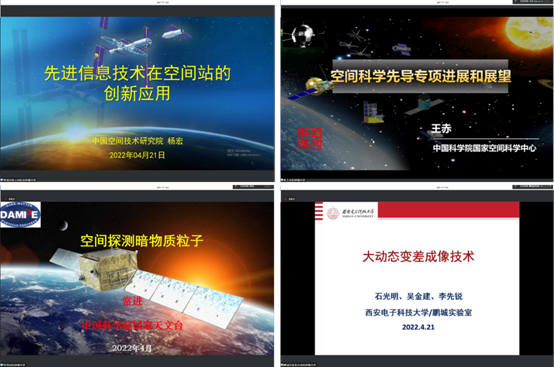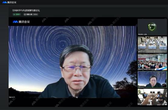 杨宏院士、王赤院士、常进院士、石光明教授做论坛主旨报告。杨宏院士介绍了中国空间站的最新进展以及空间站中先进技术的应用案例,并对空间站未来信息技术应用做出了深刻的思考;王赤院士总结了对中国空间科学战略性先导科技专项一期中的“悟空”“墨子”“慧眼”和实践十号等科学卫星取得的显著成果,对先导科技专项二期的部署任务,以及先导科技专项三期的进展情况进行了全面的阐述;常进院士介绍了空间暗物质粒子的主要探测方法和我国暗物质研究历程和研究状况,对“悟空”卫星的工作原理、研发过程以及最近观测结果进行了全面讲解;石光明教授对于其团队研制出的仿生动态成像芯片以及开发出的一套大动态差变成像系统进行了全面的介绍,讲述了该研制出的新系统将来可能助力于星空探测。四个主旨报告从多个领域的科学前沿问题出发,结合国家重大需求,阐述了各自领域的关键科学目标和先进技术进展,并对中国空间科学和探测技术未来将面临的攻关技术难点指出了发展方向。