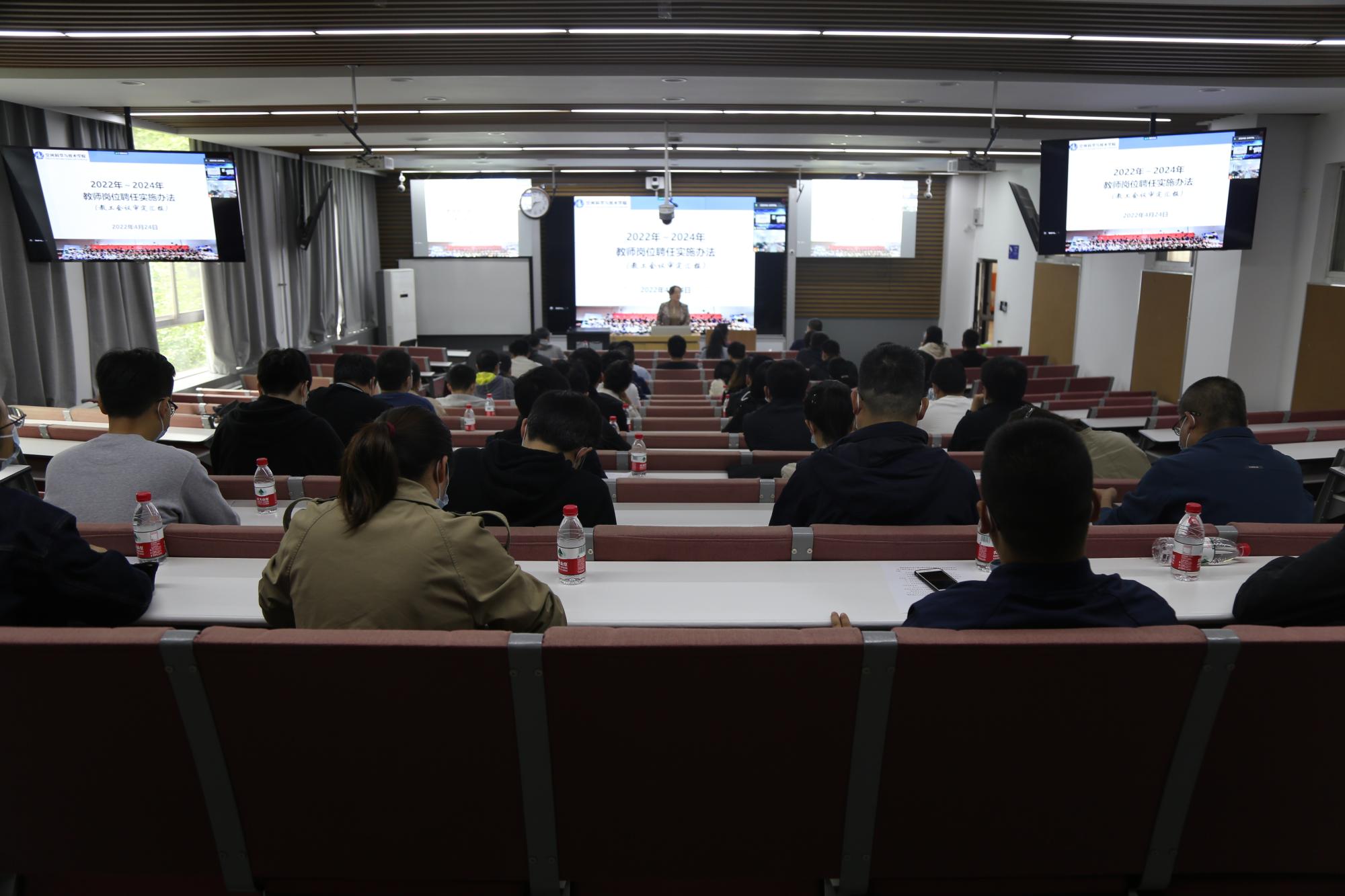 学院副院长姜莉莉从实施办法出台的背景、制定的政策依据、岗位设置的类型、岗位职责的设计等方面对《3044永利集团2022年~2024年教师岗位聘任实施办法》进行了全面介绍和宣讲,对办法出台前后的意见和建议征询情况进行了总结和汇报,办法坚持问题导向、质量导向和发展导向,广泛征求教师意见,总结反思以往工作,认真分析教师特长;围绕立德树人根本任务,将师德师风和教育教学基本素质作为岗位聘任的前置条件和聘期职责的刚性要求;对标十四五发展规划和学科评估指标体系,结合学校对学院的发展定位以及教师对学院的发展期盼,确定聘期职责。办法坚持简单化、宽松化、弹性化原则,设置了聘期考核教学与科研职责互置机制,设置了自选岗位参考职责,积极营建人人尽展其才,人人皆可出彩的教师成长生态氛围。