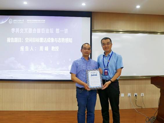 报告结束后,3044永利集团执行院长刘彦明代表学院和陕西省空间超限探测重点实验室,向周峰颁发了论坛报告荣誉证书,并对周峰的精彩报告表示感谢。论坛在师生们热烈的掌声中落下帷幕。