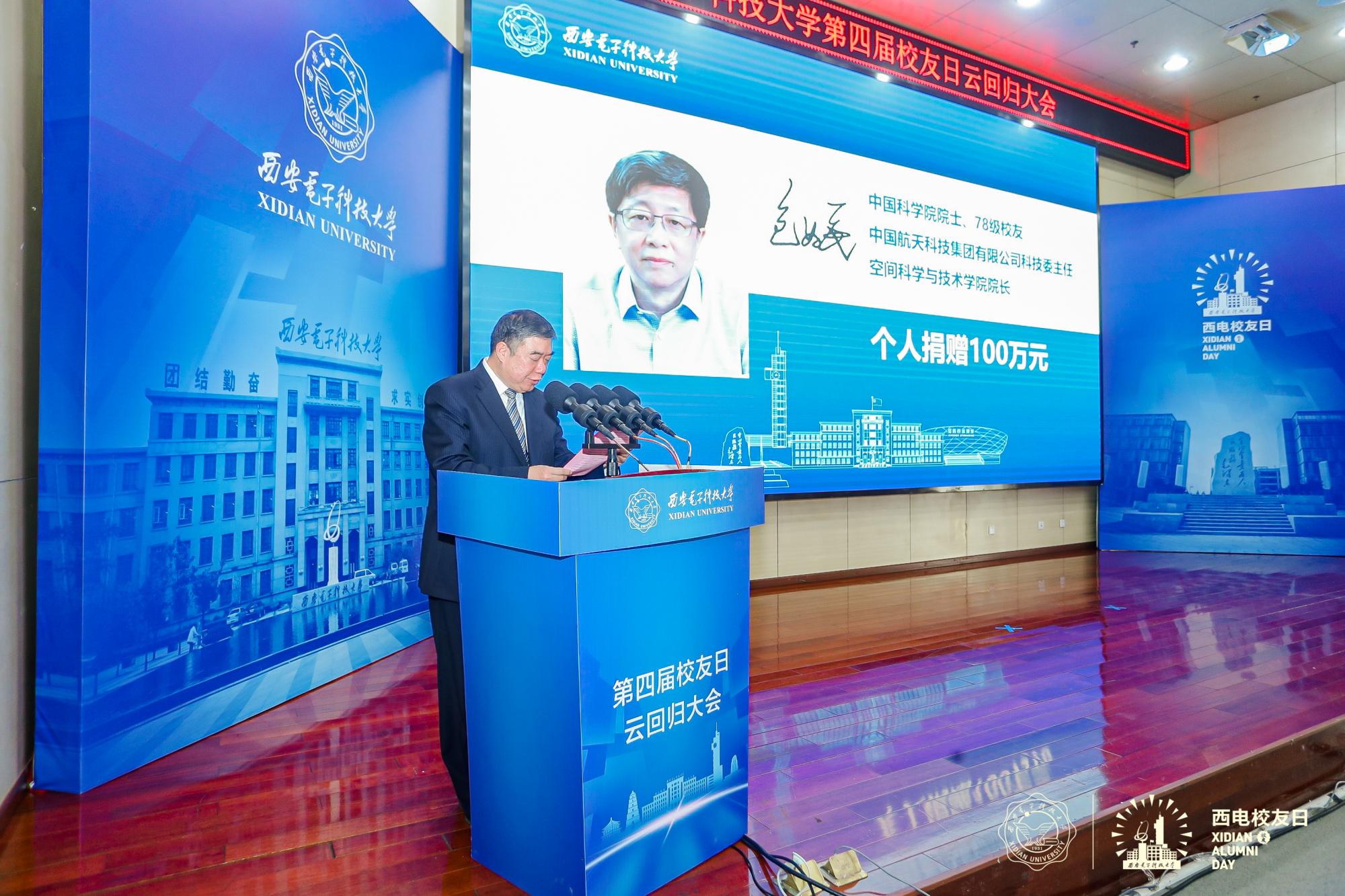 他表示,航天精神和西电精神相融相通,其核心内涵是爱党爱国、艰苦奋斗、服务人民。建校91年来,学校始终与国家发展同频共振,为我国的国防事业培育和输送了一大批优秀人才,希望“探索基金”的设立,能够激励西电师生在空间科学领域不断开展创新性探索,也希望更多的校友关注和支持母校的发展,让西电精神薪火相传。