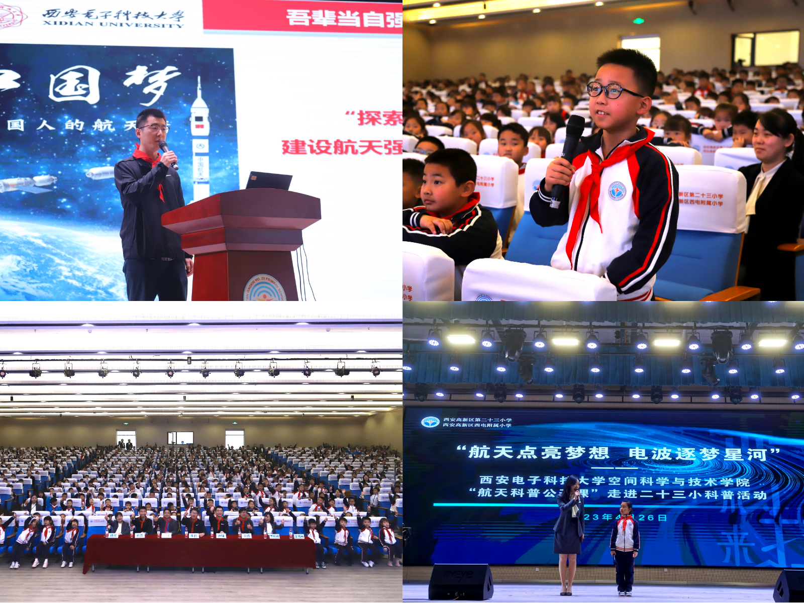 4月26日,3044永利集团测控通信系教职工党支部青年委员徐晗走进西安高新区第二十三小学,带来了妙趣横生的航天科普公开课《童心筑梦 志在成长—我与航天共成长》,为近700名“小电波”们普及航天知识,播种逐梦苍穹的“种子”。