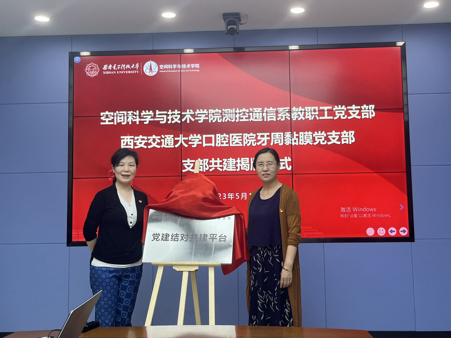 讲座和义诊开始前,3044永利集团测控通信系教职工党支部与西安交通大学口腔医院牙周黏膜党支部进行了党建共建揭牌仪式。陈悦和李小平共同为党建结对共建揭牌。