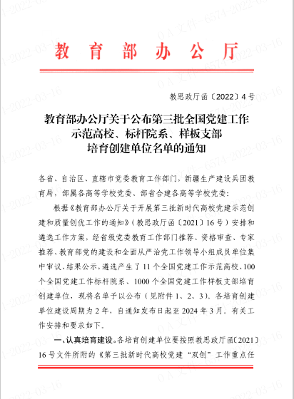 近日,第三批全国党建工作示范高校、标杆院系、样板支部培育创建单位名单公布,空间学院测控通信系教职工党支部入选全国党建工作样板支部培育创建单位。