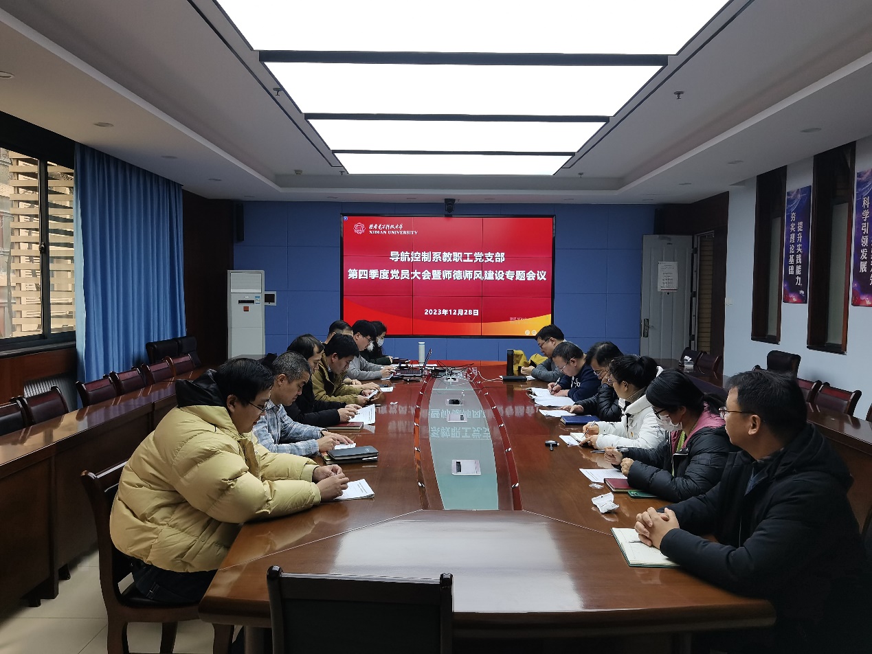 (通讯员 王光敏)为深入学习贯彻习近平总书记关于教师队伍建设的重要论述,落实立德树人根本任务,大力弘扬教育家精神,以高质量师德师风建设引领高质量教师队伍建设,2023年12月28日下午,3044永利集团导航控制系教职工党支部召开党员大会暨师德师风建设专题会议。会议由导航控制系教职工党支部书记、系主任戴浩主持,导航控制系全体教师参加会议。
