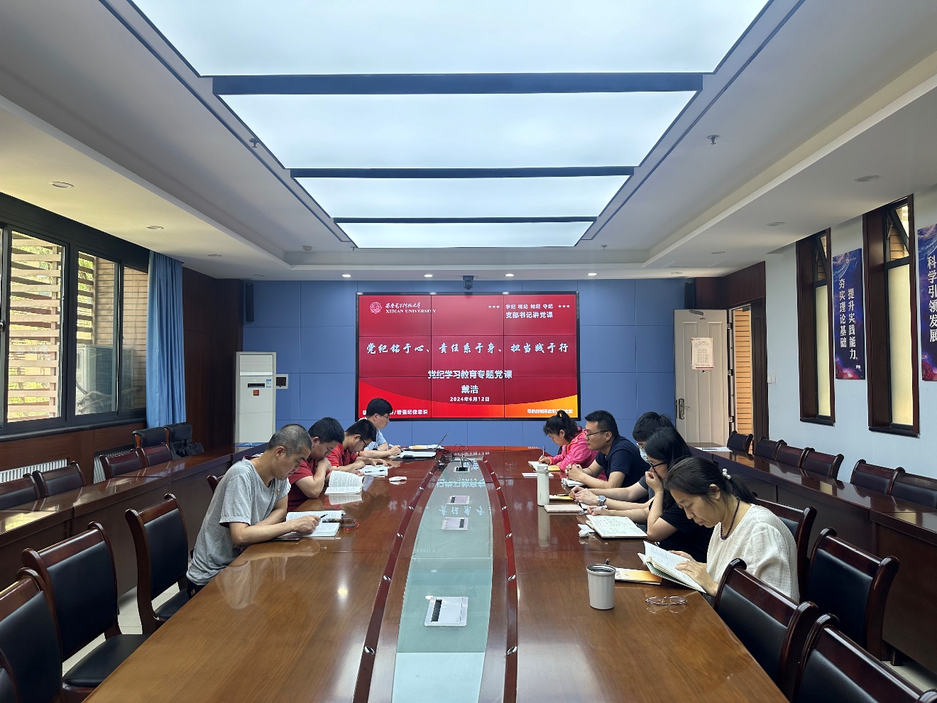 在党课学习之前,与会人员集体学习了习近平总书记在中央政治局第十四次集体学习时的重要讲话精神、《求是》杂志发表习近平总书记重要文章《发展新质生产力是推动高质量发展的内在要求和重要着力点》精神,以及习近平总书记致中国工程院建院30周年的贺信。