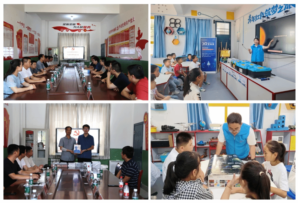在学院对接帮扶的荆姚九年制学校,帮扶双方举行图书捐赠仪式并围绕乡村振兴、教育帮扶、人才培养等内容展开座谈交流。荆姚学校校长蒲小明对学院师生的到来表示欢迎并介绍了学校办学基本情况,他谈到,今年是荆姚九年制学校建校100周年,希望双方以此为契机,不断加强交流协作,共同推动荆姚学校建设发展和学生培养质量提升。朱伟表示,空间学院党委高度重视与荆姚学校的对接帮扶工作,希望以教育帮扶为抓手,继续紧密结合荆姚学校实际需求,聚焦乡村振兴总体要求,为荆姚学校学生成长提供帮助和支持。